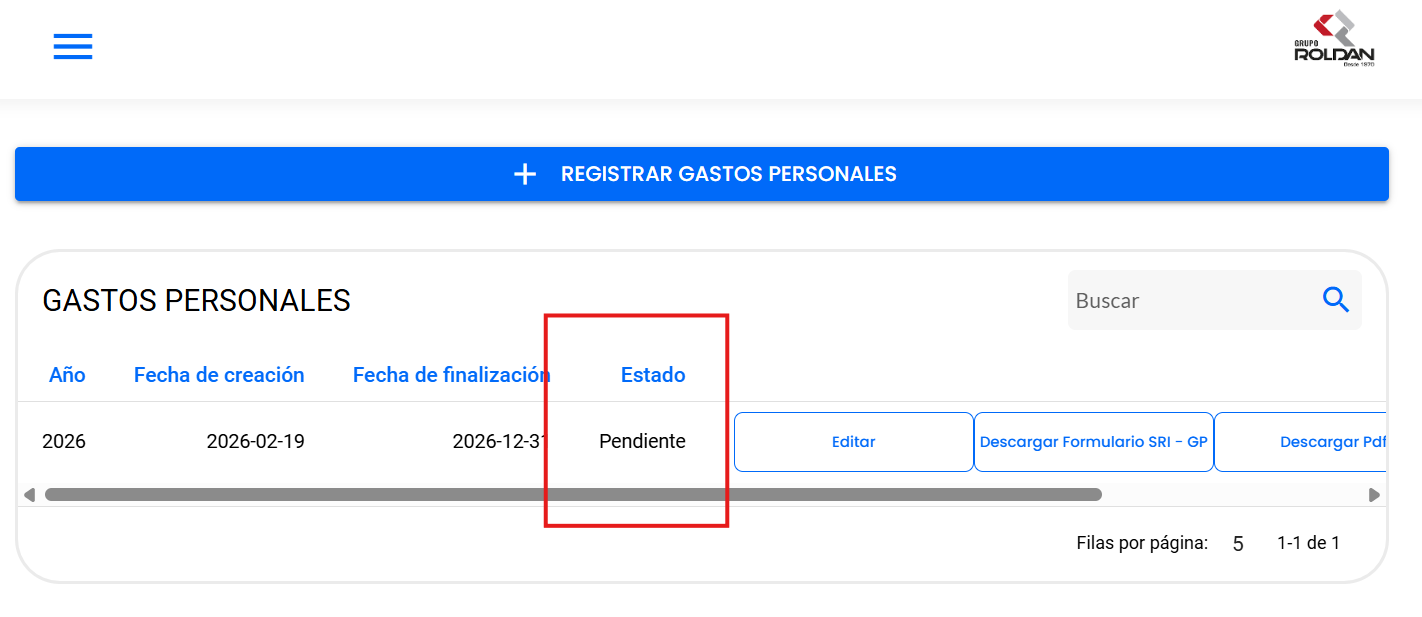 Guiar al colaborador en el proceso de registro, seguimiento y gestión de sus gastos personales dentro del Portal del Empleado, asegurando que la información sea enviada correctamente para su aprobación y posterior generación del formulario para el SRI.