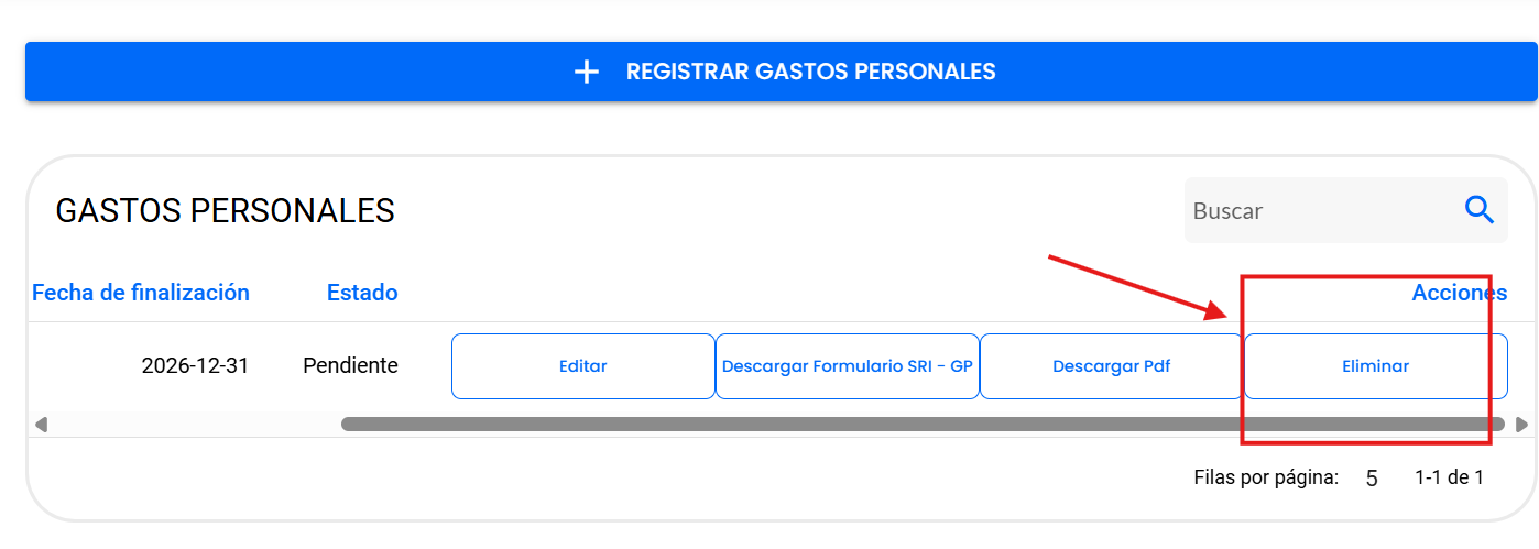 NOTA: Recuerde que sólo podrá eliminar registros de gastos cuando estos no se hayan aprobado